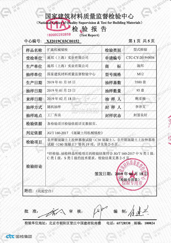 自切/扩底机械锚栓属于纯金属类锚栓产品