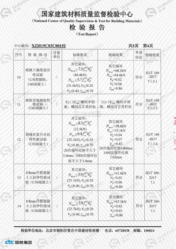表格未列出的产品,请参照《JGJ145-2013混凝土结构后锚固技术规程》按照承载力极限状态计算方式得出相应数据,具体方案请咨询施邦 (上海) 实业有限公司技术部