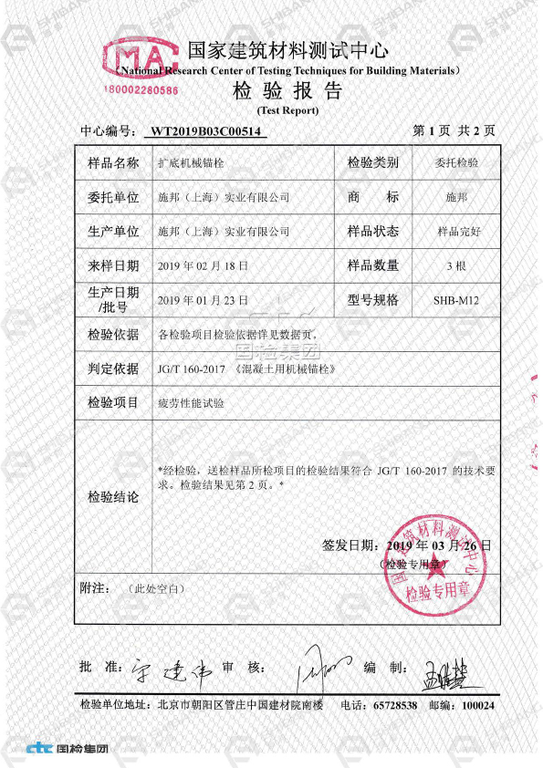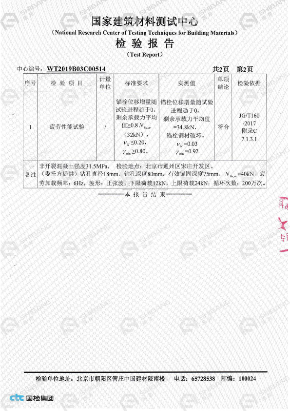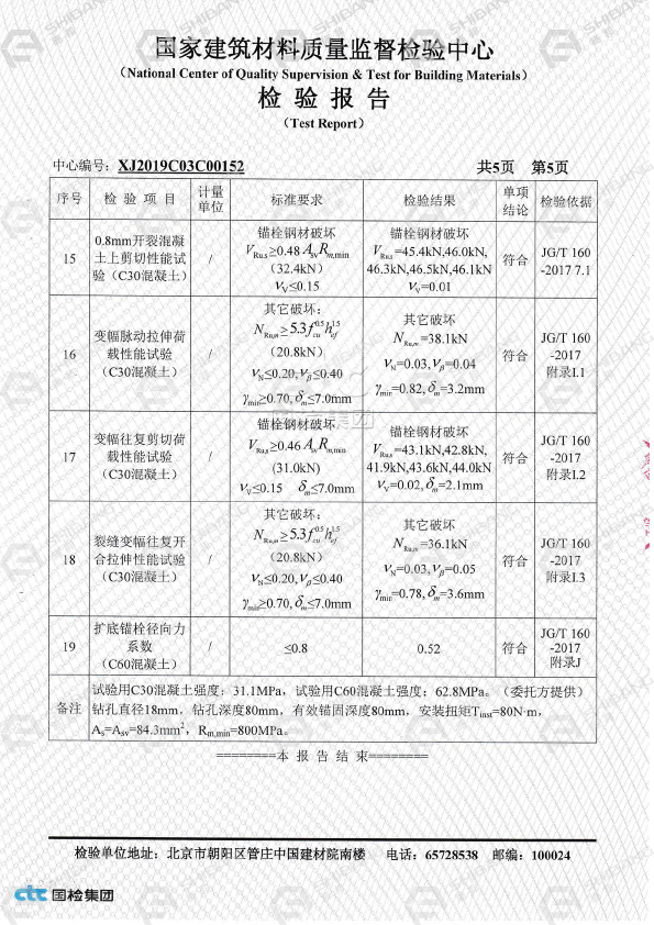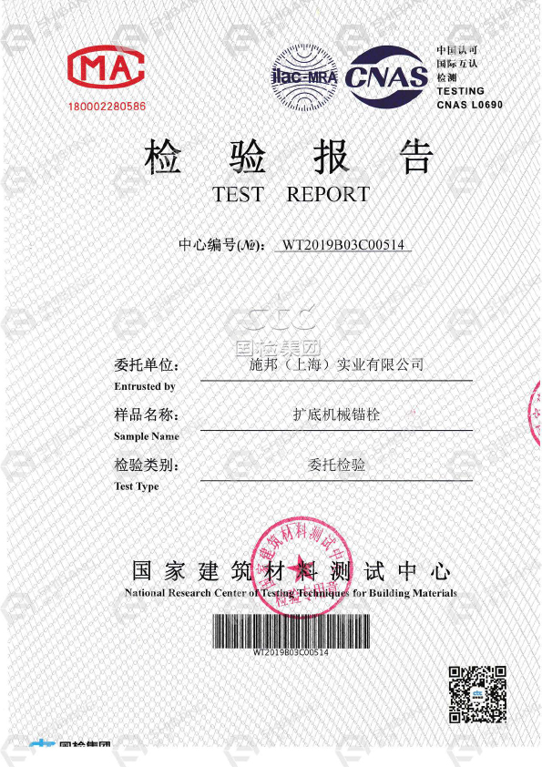 通过《我国建筑材料测试中心》检测