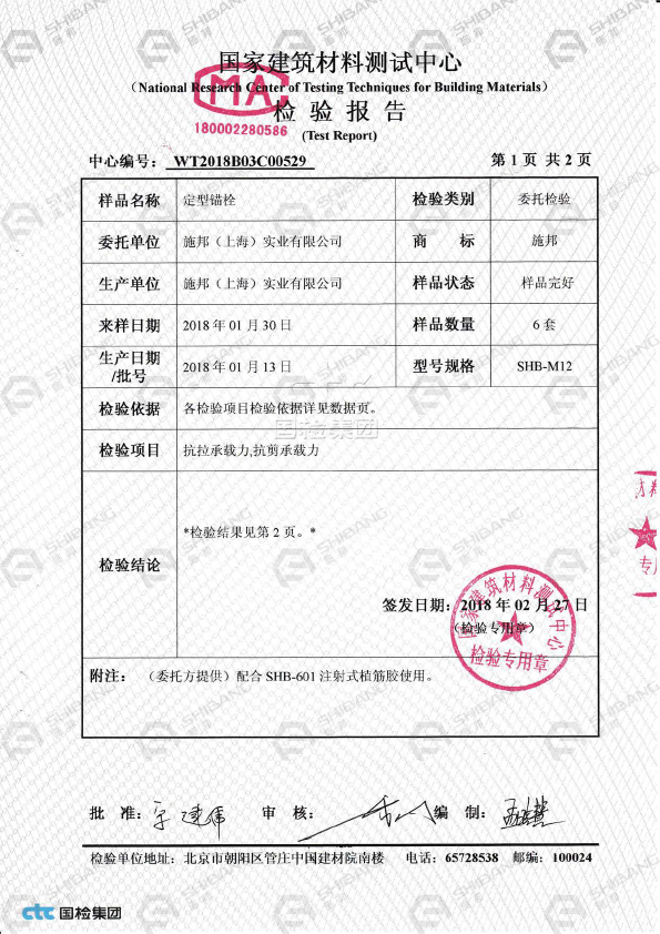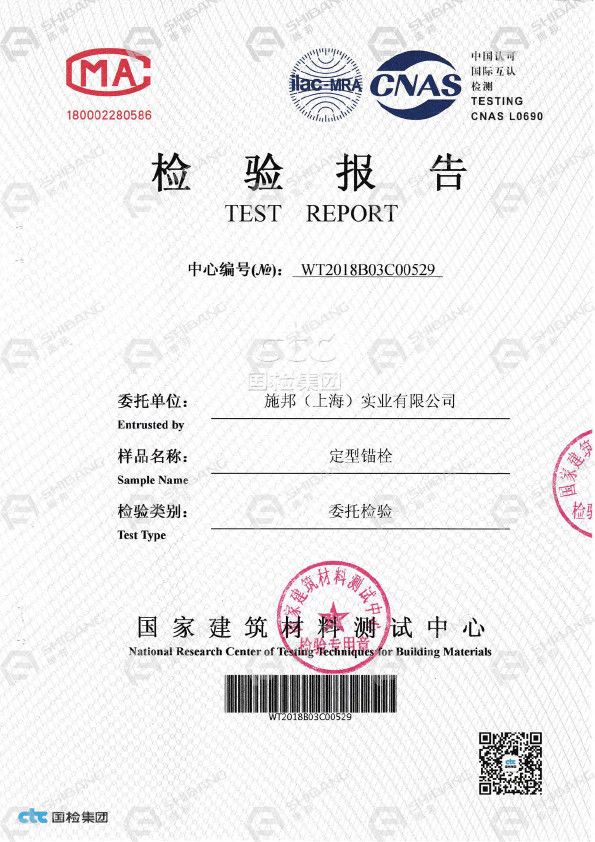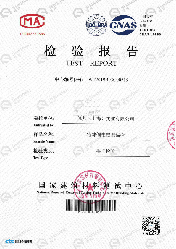 施邦研发出了特殊倒锥定型锚栓的专用植筋胶