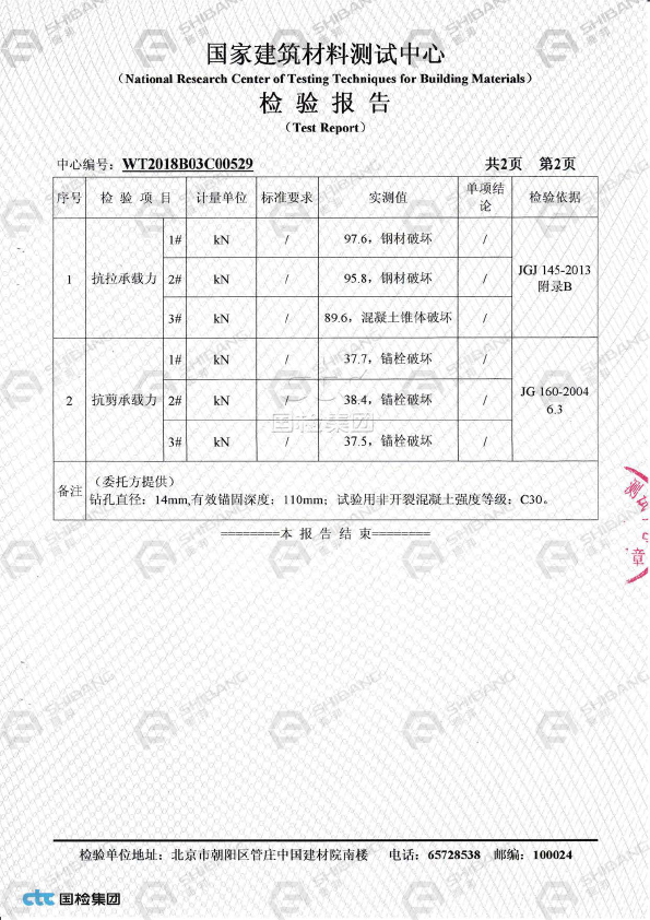 表格未列出的产品,请参照《JGJ145-2013混凝土结构后锚固技术规程》按照承载力极限状态计算方式得出相应数据,具体方案请咨询施邦 (上海) 实业有限公司技术部