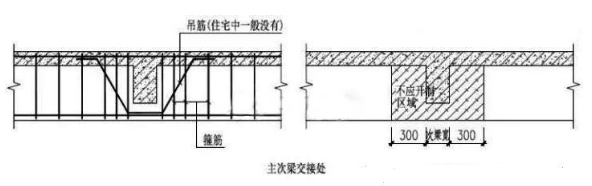 2)不要在主次梁交接处附近开洞;