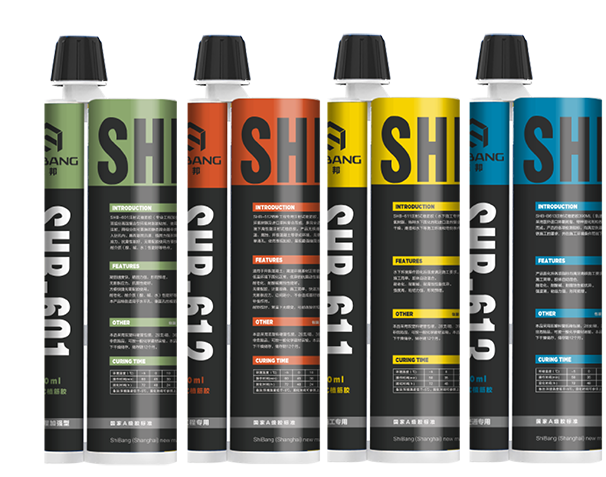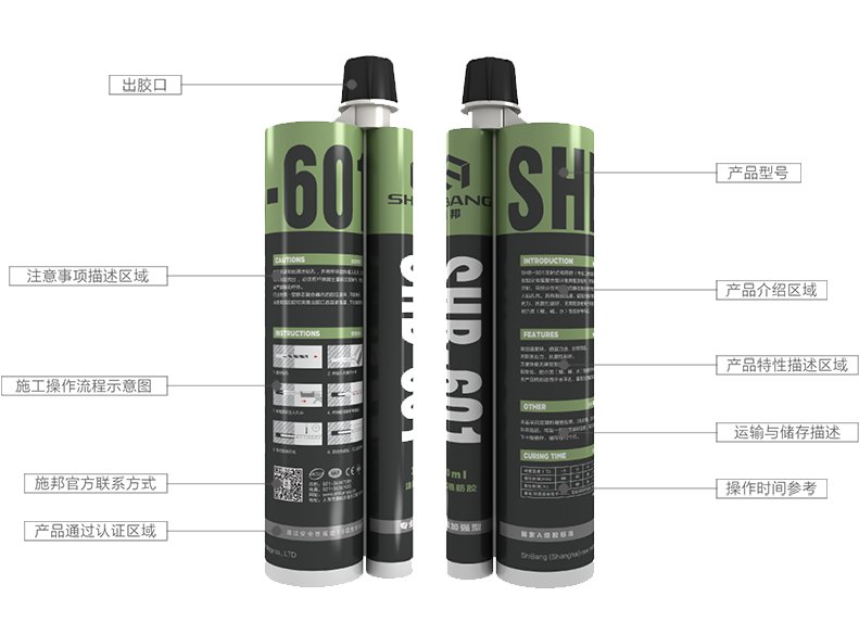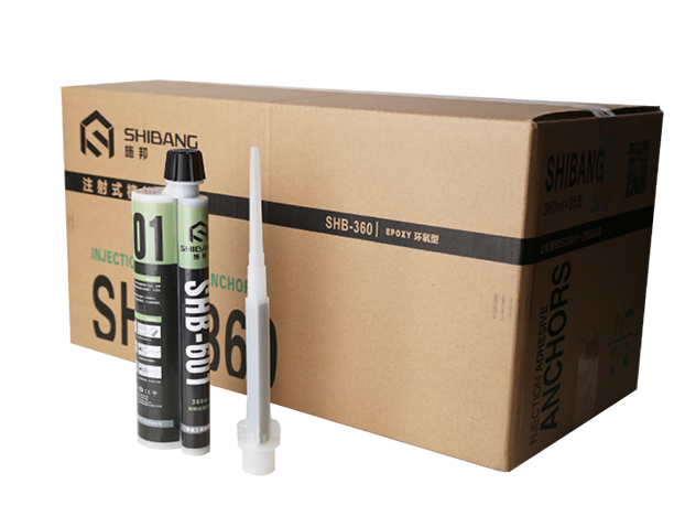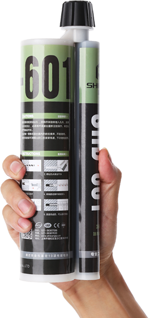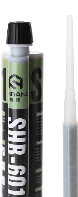 SHB-601注射式植筋胶(专业工程加强型)系A、B组分高强复合型环氧树脂胶粘剂,使用专用的注射枪注射,两组分在可更换的静态混合器中充分混合直接注入钻孔内
